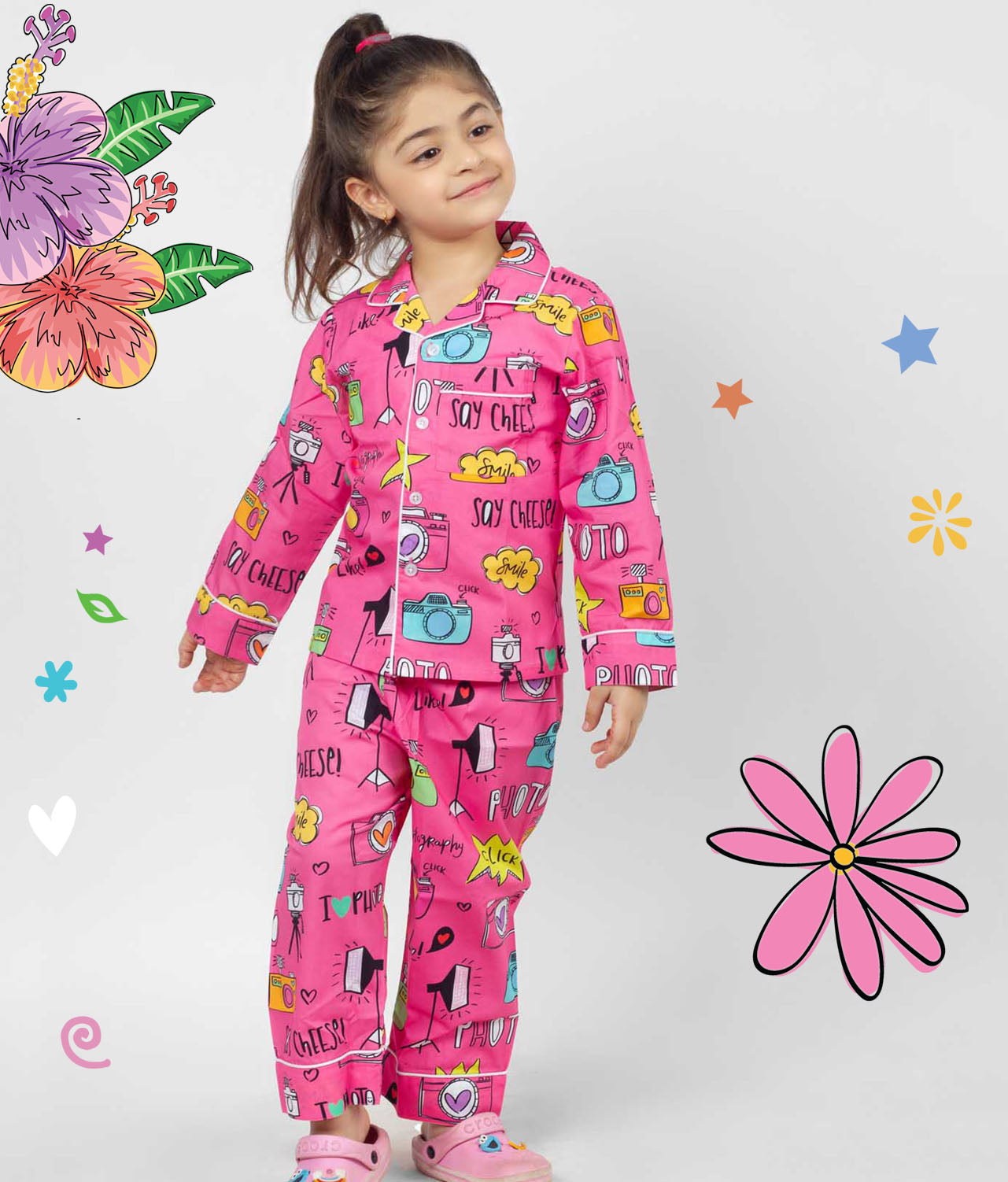 Fun & Smile Printed Girls Pure Cotton Nightsuit Set