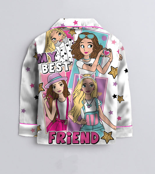 Cute BFF Printed Girls Pure Cotton Nightsuit Set