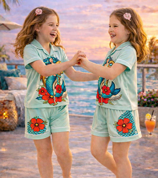 Mermaid Dream Printed Girls Pure Cotton Half Nightsuit Set