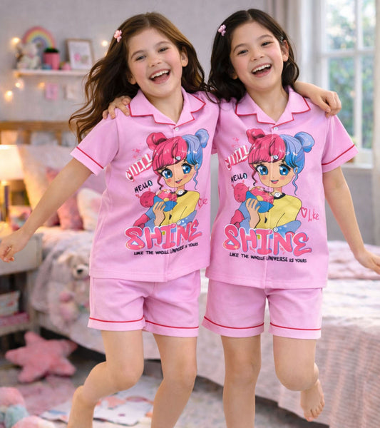 Shining Star Printed Girls Pure Cotton Nightsuit Set