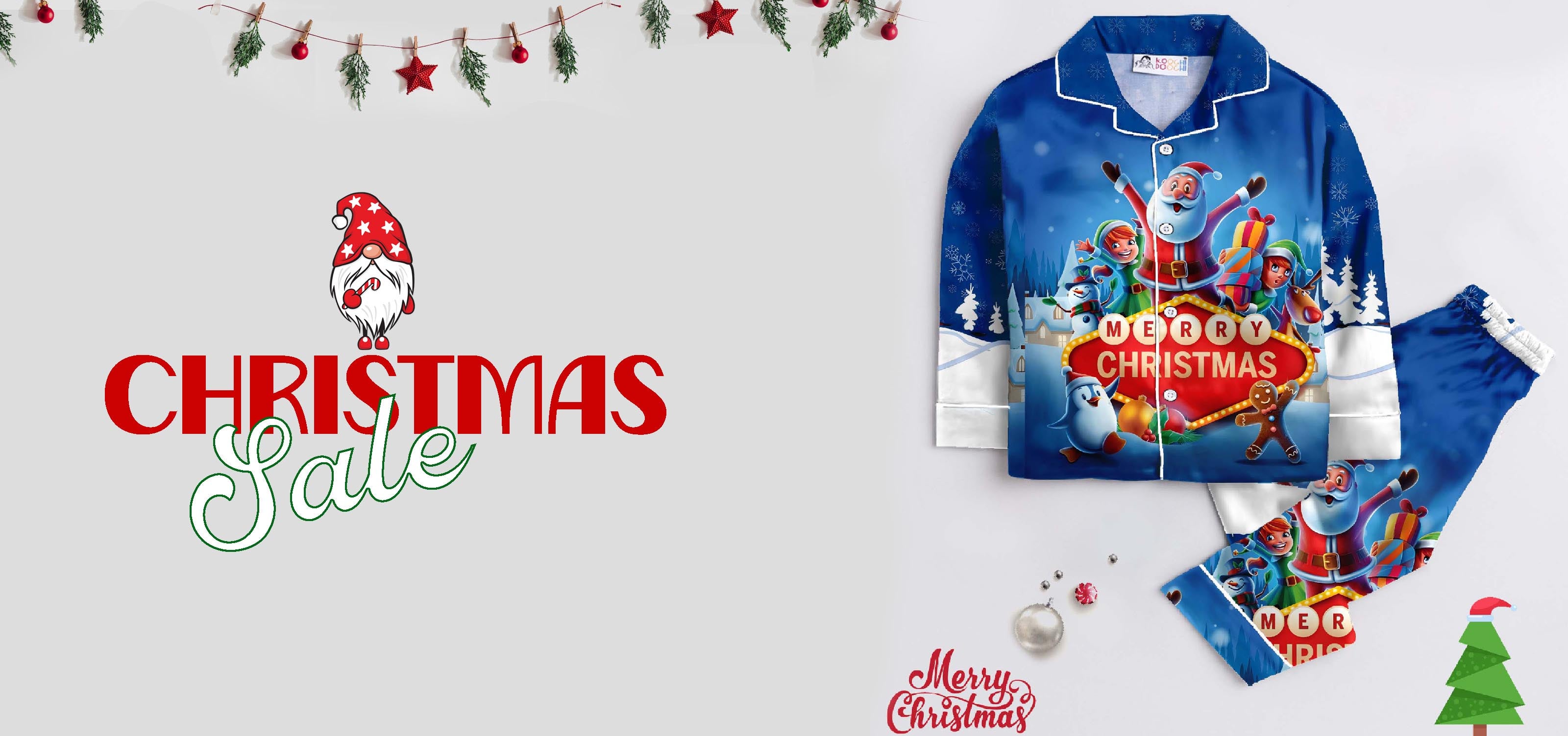 Christmas Theme Tree Santa Pure Cotton Printed Nightsuit Sets