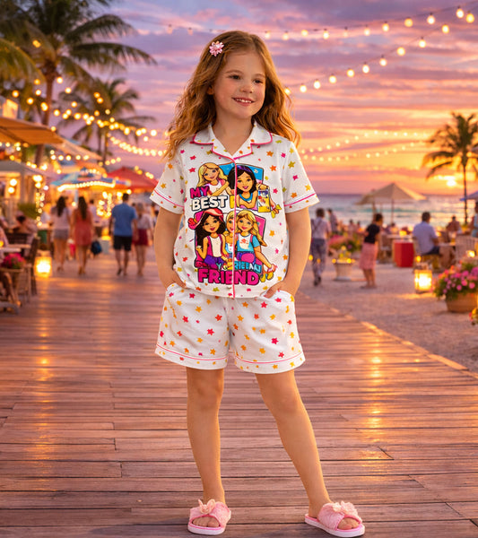 Best Friend Printed Girls Pure Cotton Nightsuit Set