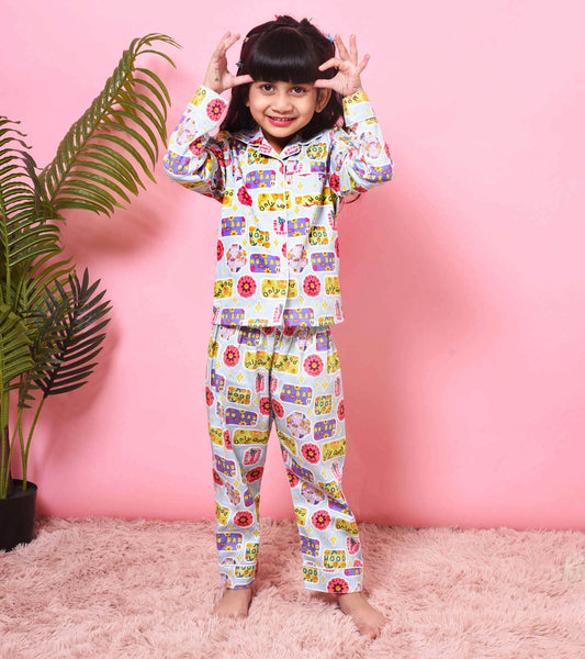 Tulip Printed Girls Pure Cotton Nightsuit Set