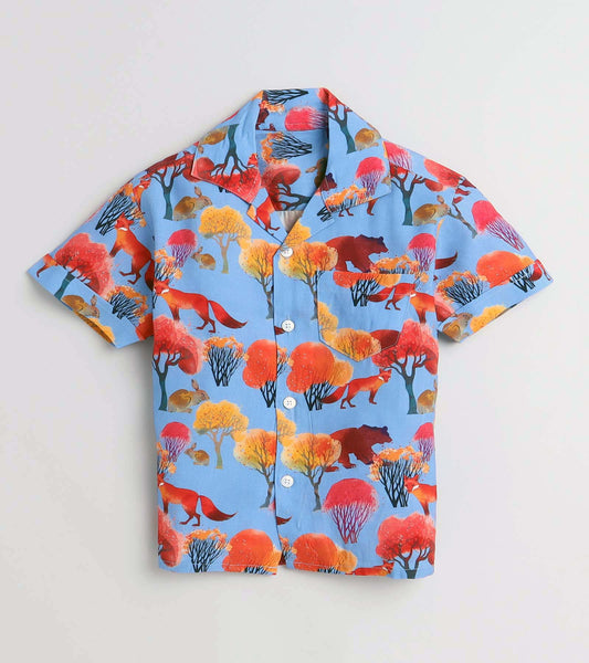 Orange Printed Girls Pure Cotton Nightsuit Set