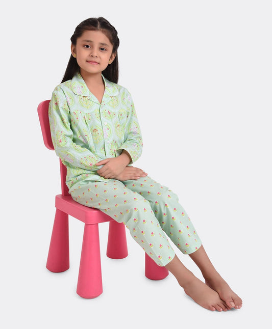 Two Buti Printed Girls Nightsuit Set