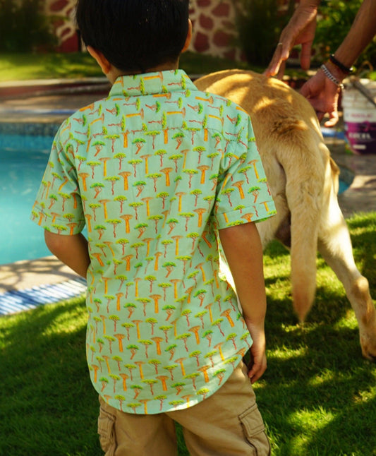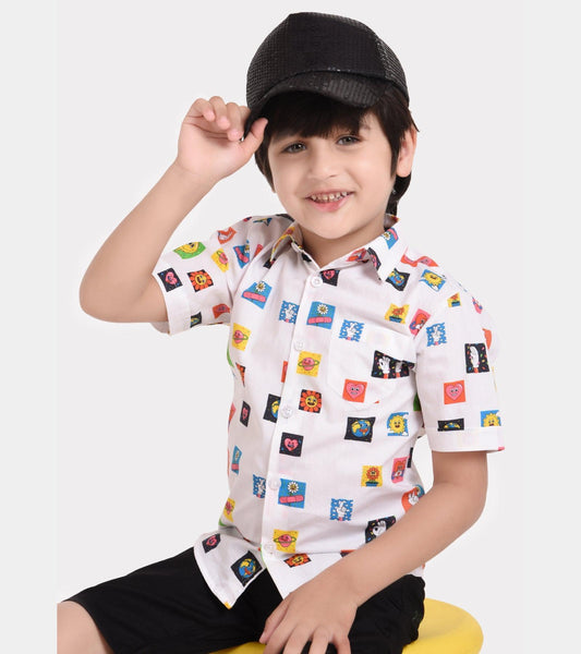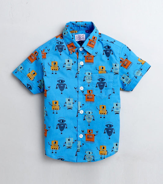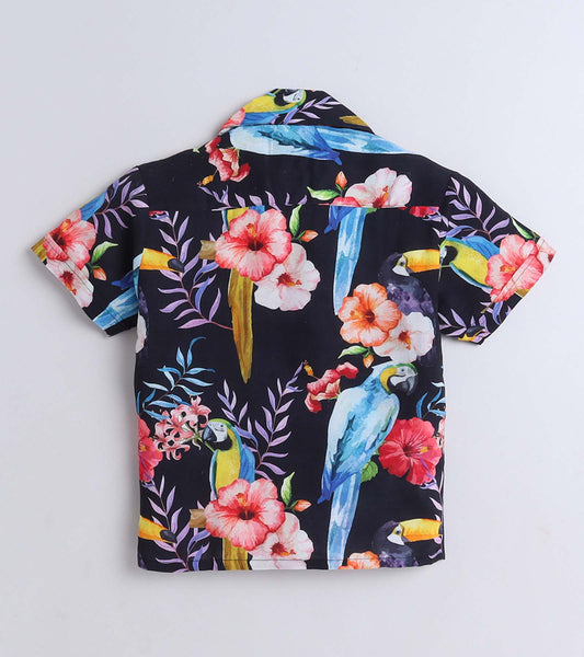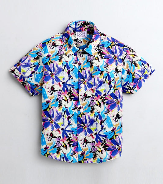 Spring Spell Digital printed Shirt with Blue solid Shorts