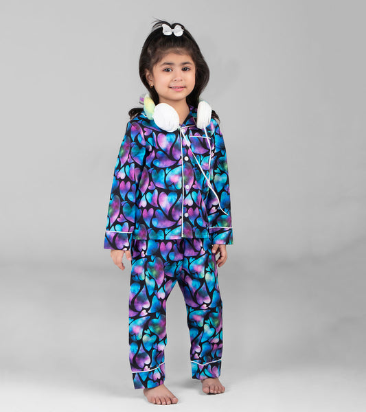 Butterfly in Reverse Printed Girls Nightsuit Set