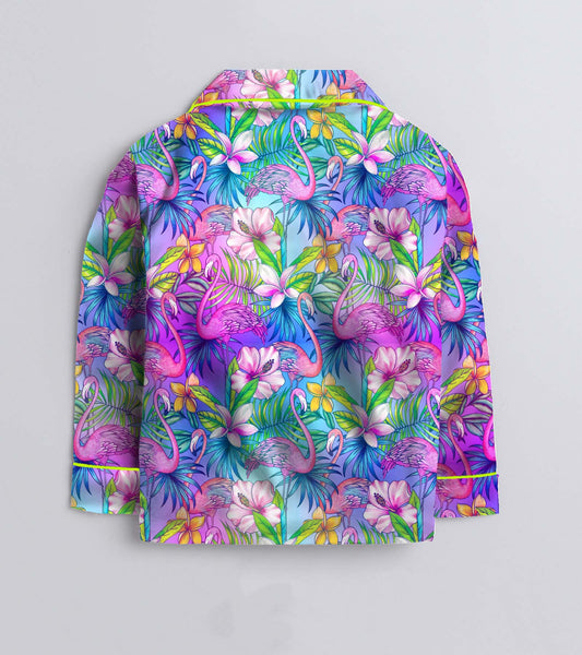 Neon Flemingo Printed Girls Pure Cotton Nightsuit Set