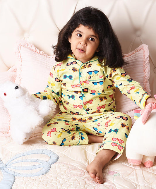 Sunglasses Printed Night Suit Set for Girls
