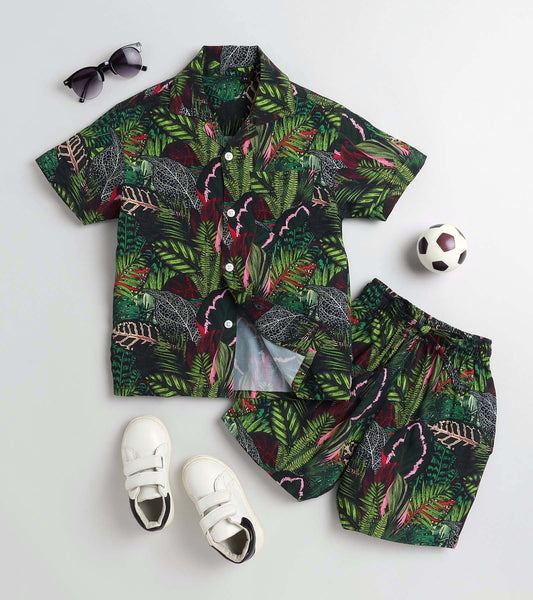 Wild Jungle Leaf Printed Boys Co ord Set
