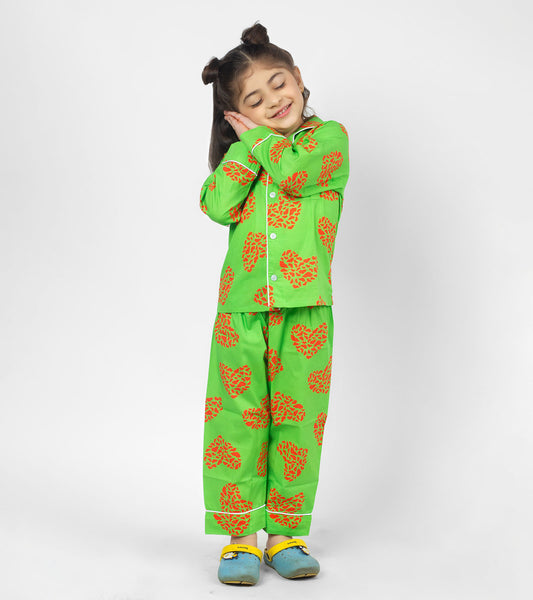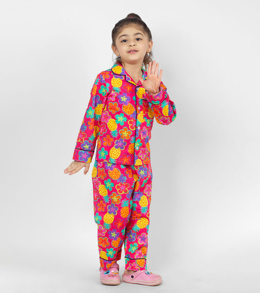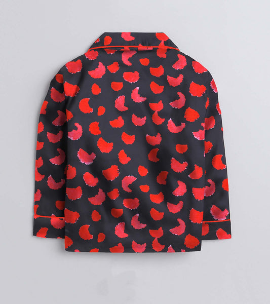 Night Red Printed Girls Pure Cotton Nightsuit Set