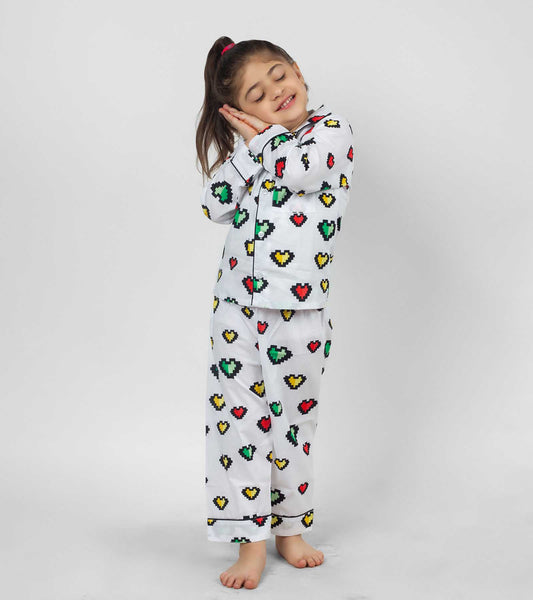 Polka Love Printed Girls Pure Cotton Nightsuit Set
