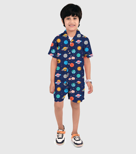 Space and Moon Cute Pure Cotton Printed Nightsuit Set