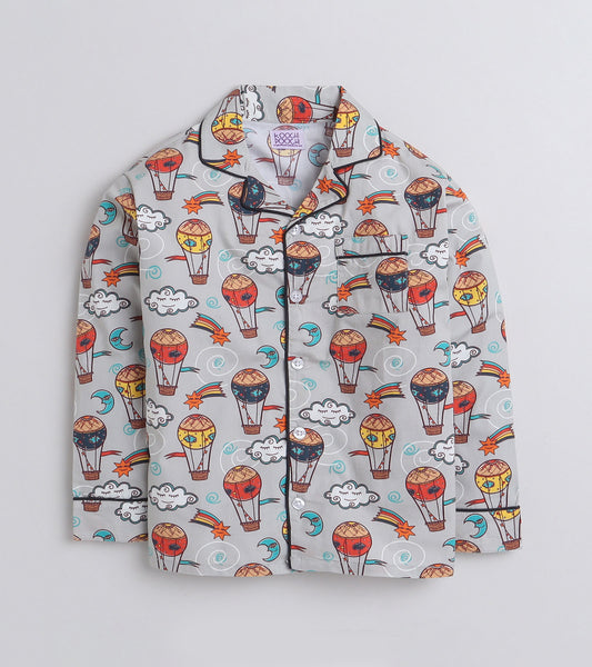 Sky Balloon Grey Printed Nightsuit Set for Girls