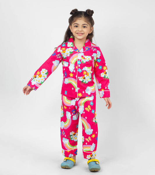 Red Ground Rainbow Printed Girls Nightsuit Set