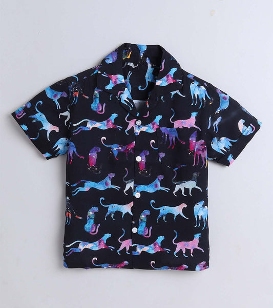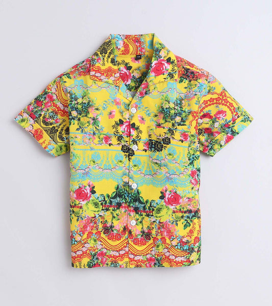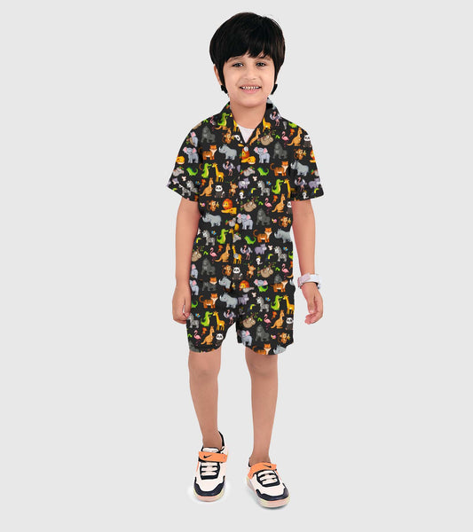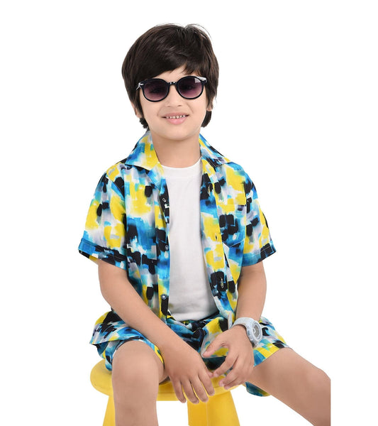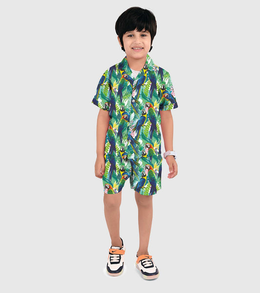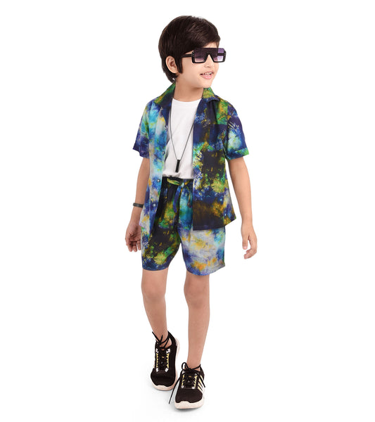 Leaf Shadow Digital printed Shirt with White solid Shorts