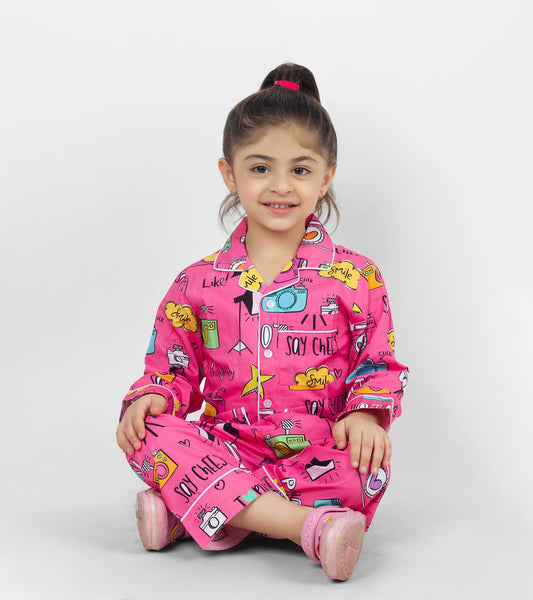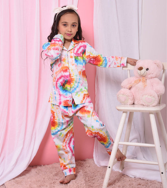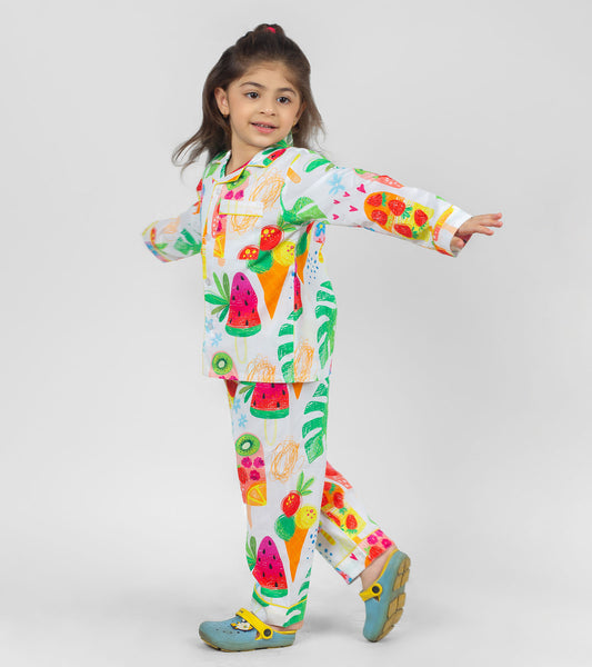 Cheerful Summery Colours Printed Girls Nightsuit Set