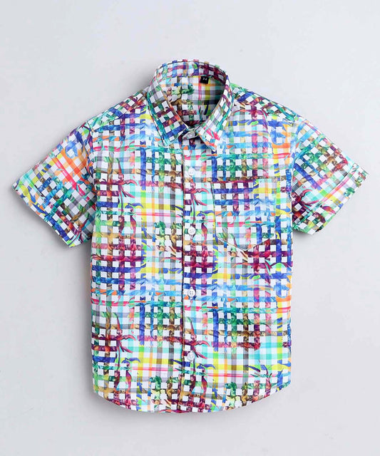 Checks Print Pure Cotton Half Sleeve Shirt For Boys