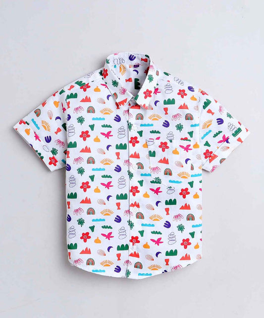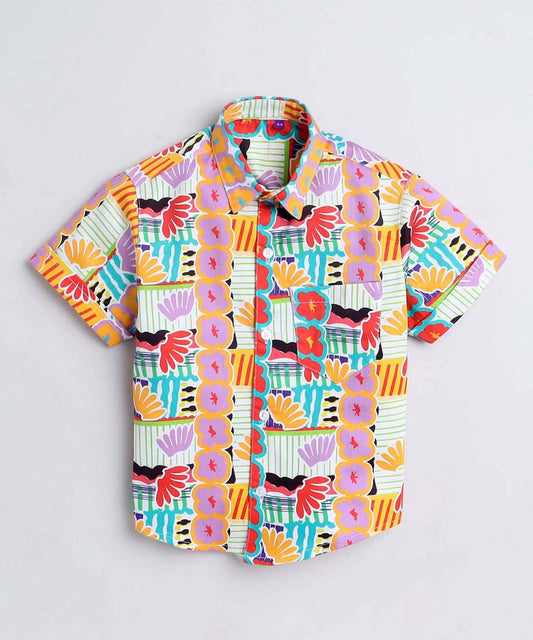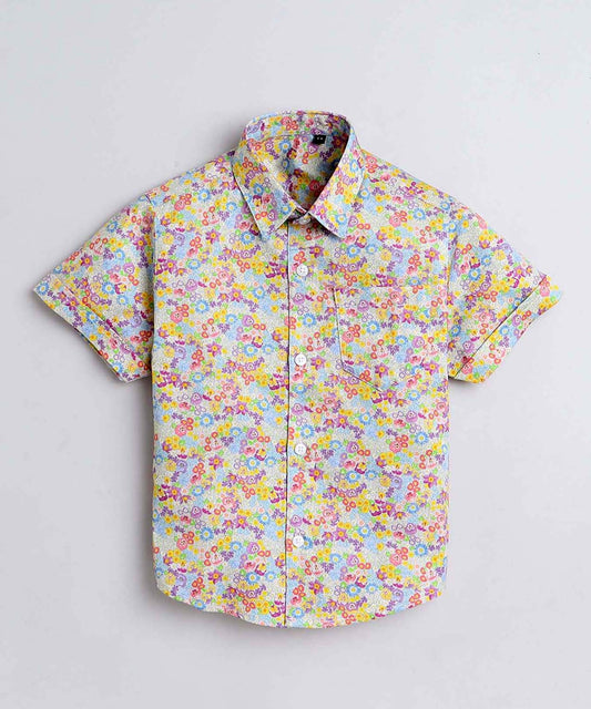 Floral Print Pure Cotton Half Sleeve Shirt For Boys