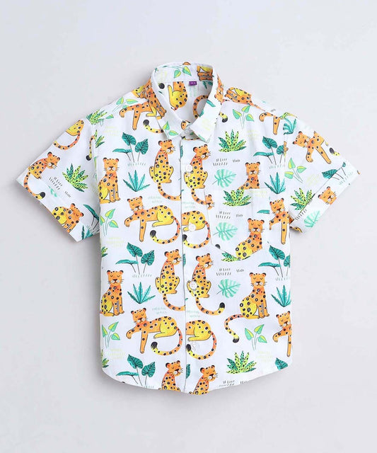 Leopard Print Pure Cotton Half Sleeve Shirt For Boys