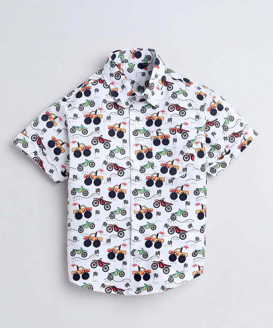 Racing Truck Print Pure Cotton Half Sleeve Shirt For Boys