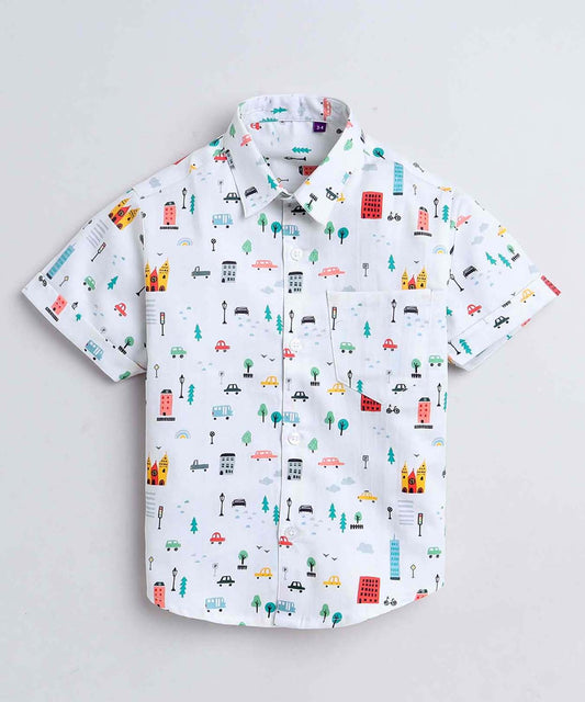 Street Print Pure Cotton Half Sleeve Shirt For Boys