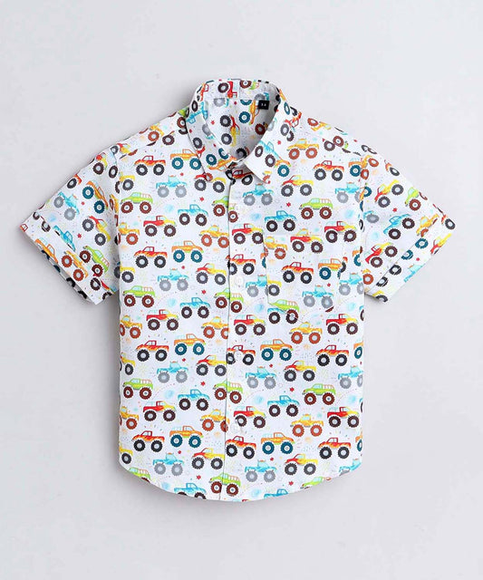 Truck Print Pure Cotton Half Sleeve Shirt For Boys