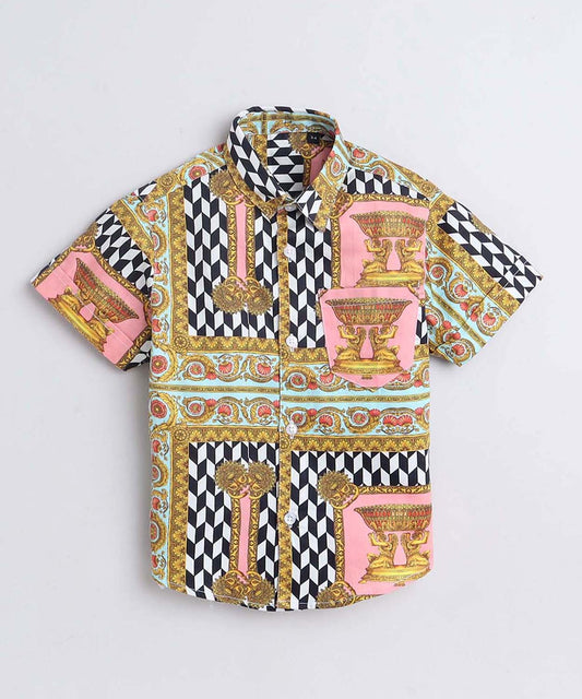 Vance Print Pure Cotton Half Sleeve Shirt For Boys