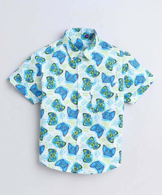 Video Game Print Pure Cotton Half Sleeve Shirt For Boys