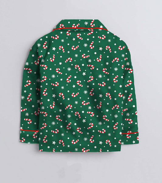 Green Christmas Theme Cotton Christmas Printed Nightsuit Set