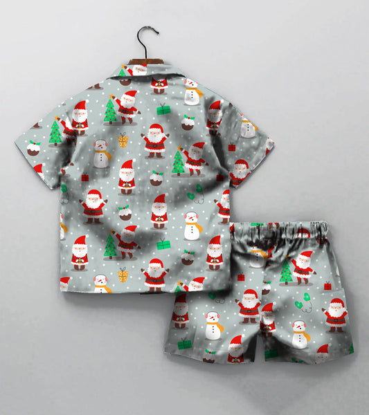 Grey Santa Christmas Printed Boys Co ord Set