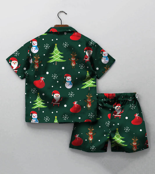 Green Christmas Snow Printed Boys Co ord Set