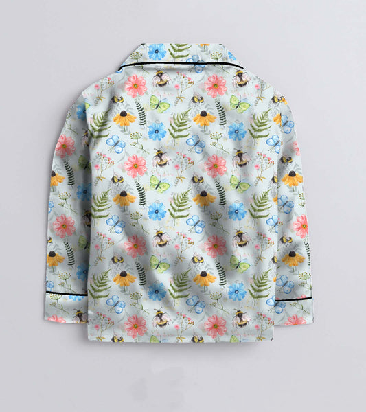 Flower Printed Girls Pure Cotton Nightsuit Set