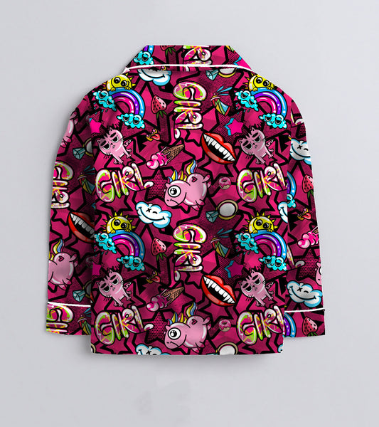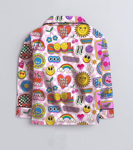 Cool Vibes Printed Girls Pure Cotton Nightsuit Set