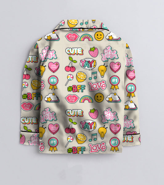 Friends Love Printed Girls Pure Cotton Nightsuit Set