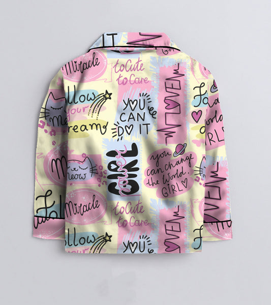Colourfull Love Printed Girls Pure Cotton Nightsuit Set