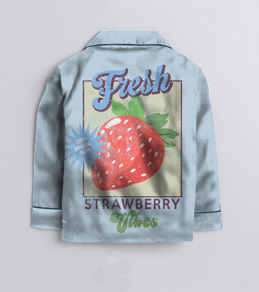 Fresh Strawberry Printed Girls Pure Cotton Nightsuit Set