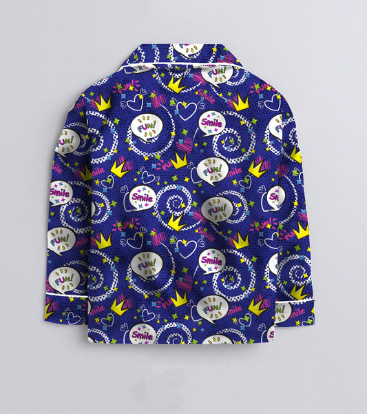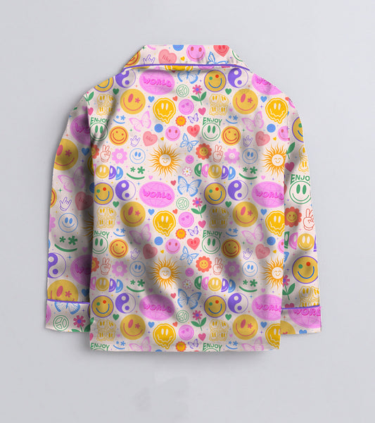 Smilely Printed Girls Pure Cotton Nightsuit Set