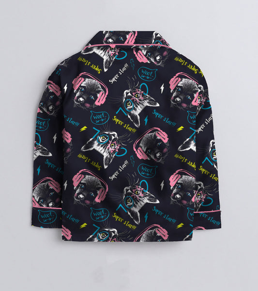 Woof Printed Girls Pure Cotton Nightsuit Set