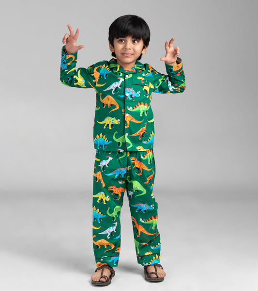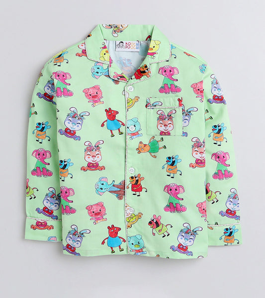 Christmas Dark Green Cute Santa Printed Nightsuit Set