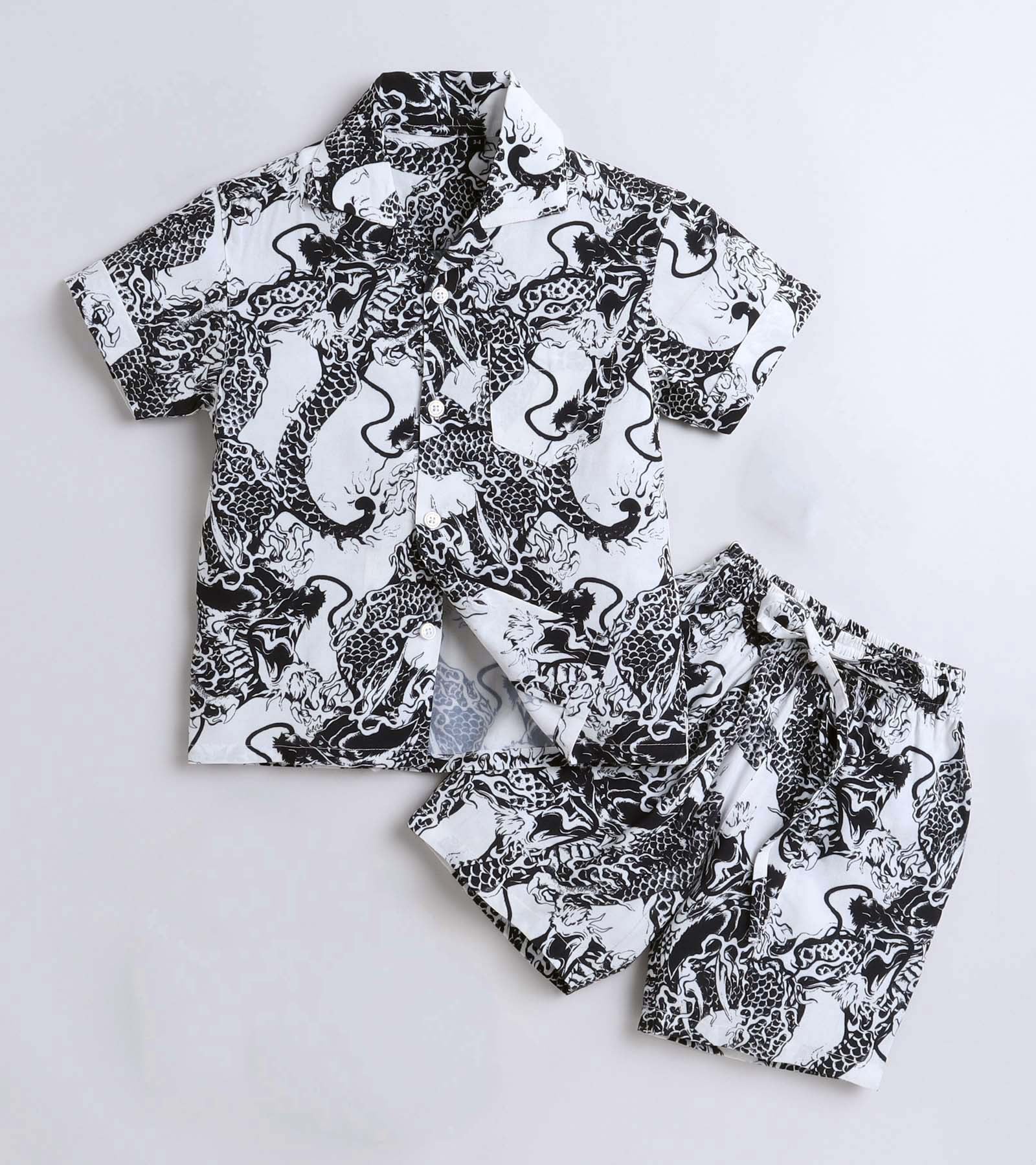 Boys co-ord set in a striking all over print. Made from soft Viscose fabric and has a elasticated waistband with side pockets for a comfortable fit.