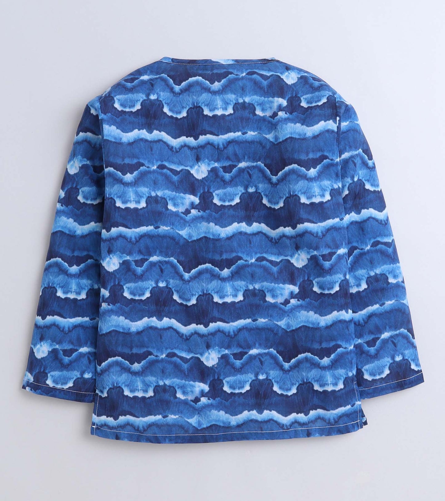 Wavy Blue Tie-dye Printed Pyjama Kurta Set