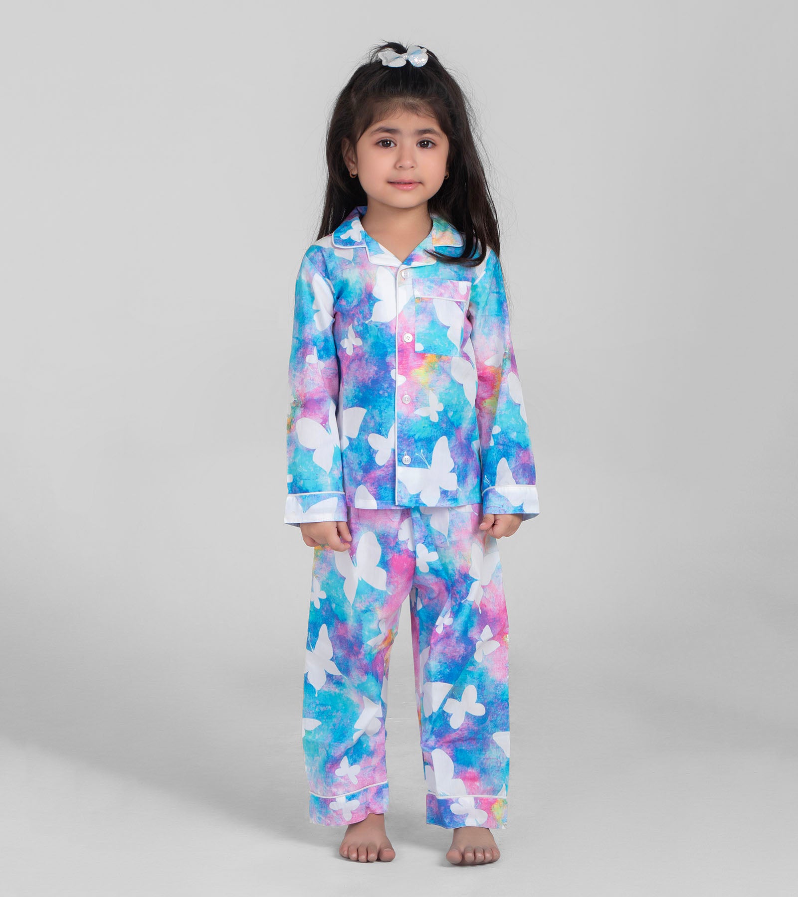 Butterfly in Reverse Printed Girls Nightsuit Set