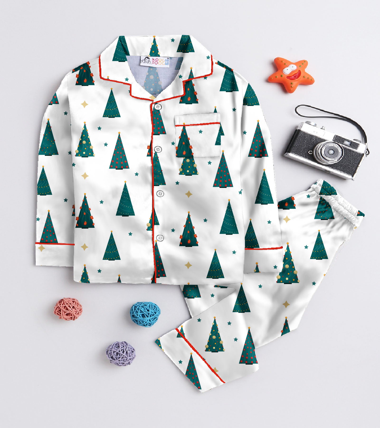 Christmas Theme Tree Santa Pure Cotton Printed Nightsuit Sets