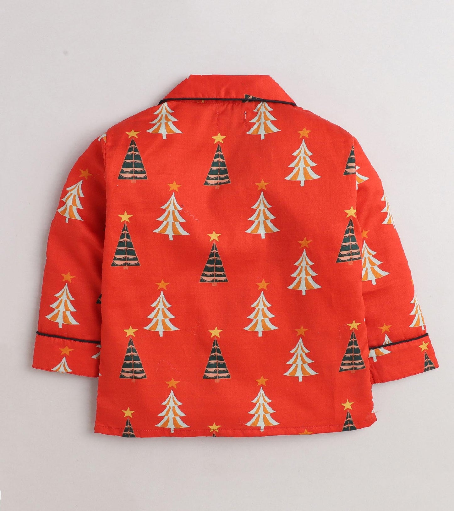 PRINT & DESIGN: This classic Red base notched collar pyjama set features a full-sleeve shirt and full-length festive christmas printed cute santa look pyjama. The soft elastic bottom with contrast cording adds a touch of style to this adventurous ensemble. The vibrant prints resist fading, ensuring the ensemble retains its charm wash after wash.