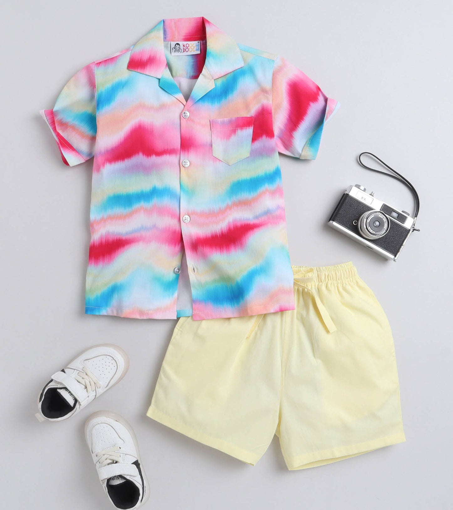 Colour Waves Digital printed Shirt with yellow solid Shorts