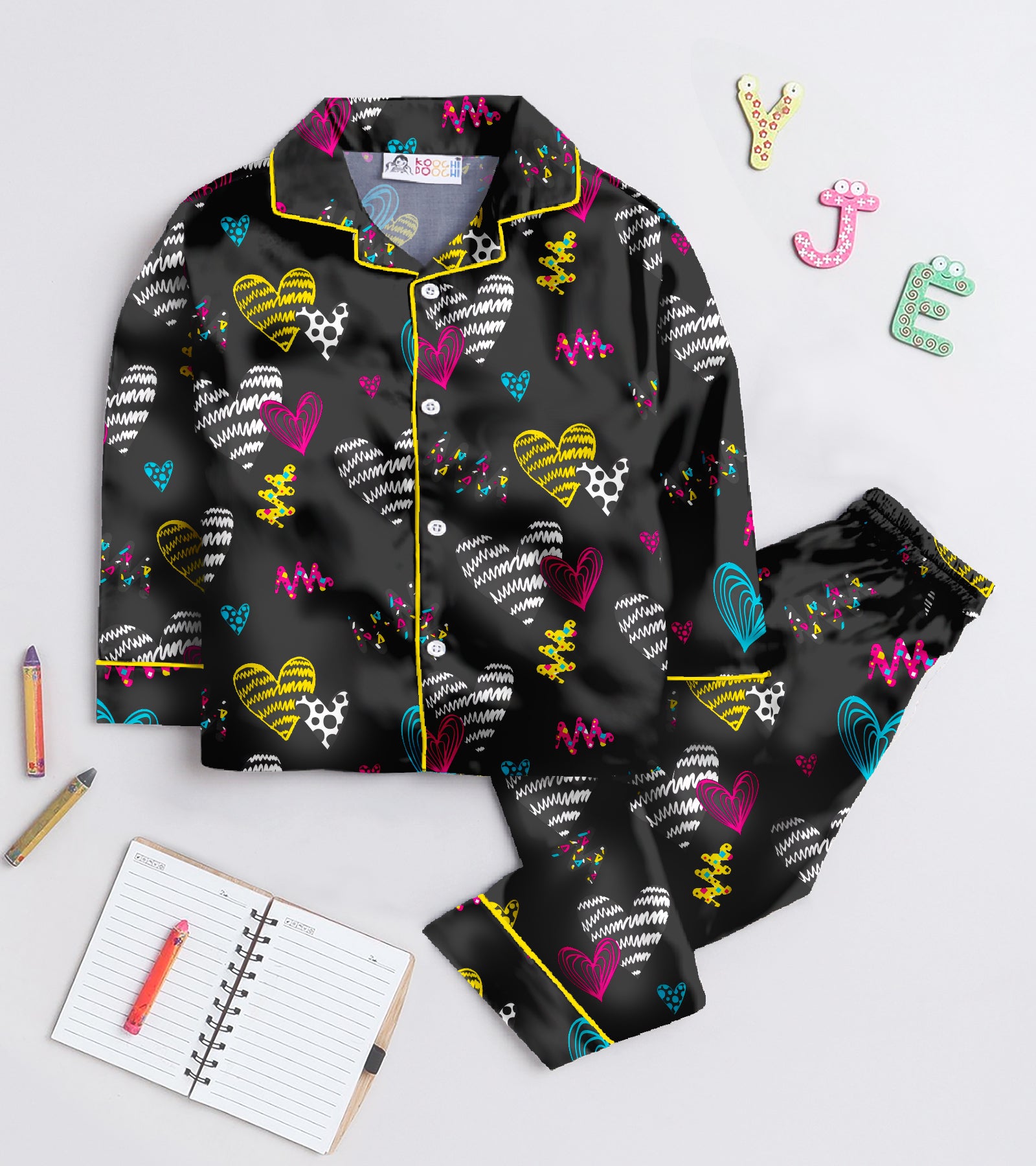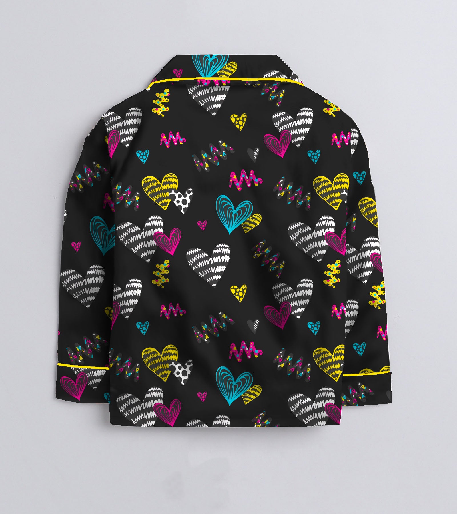 Colourfull Love Printed Girls Pure Cotton Nightsuit Set