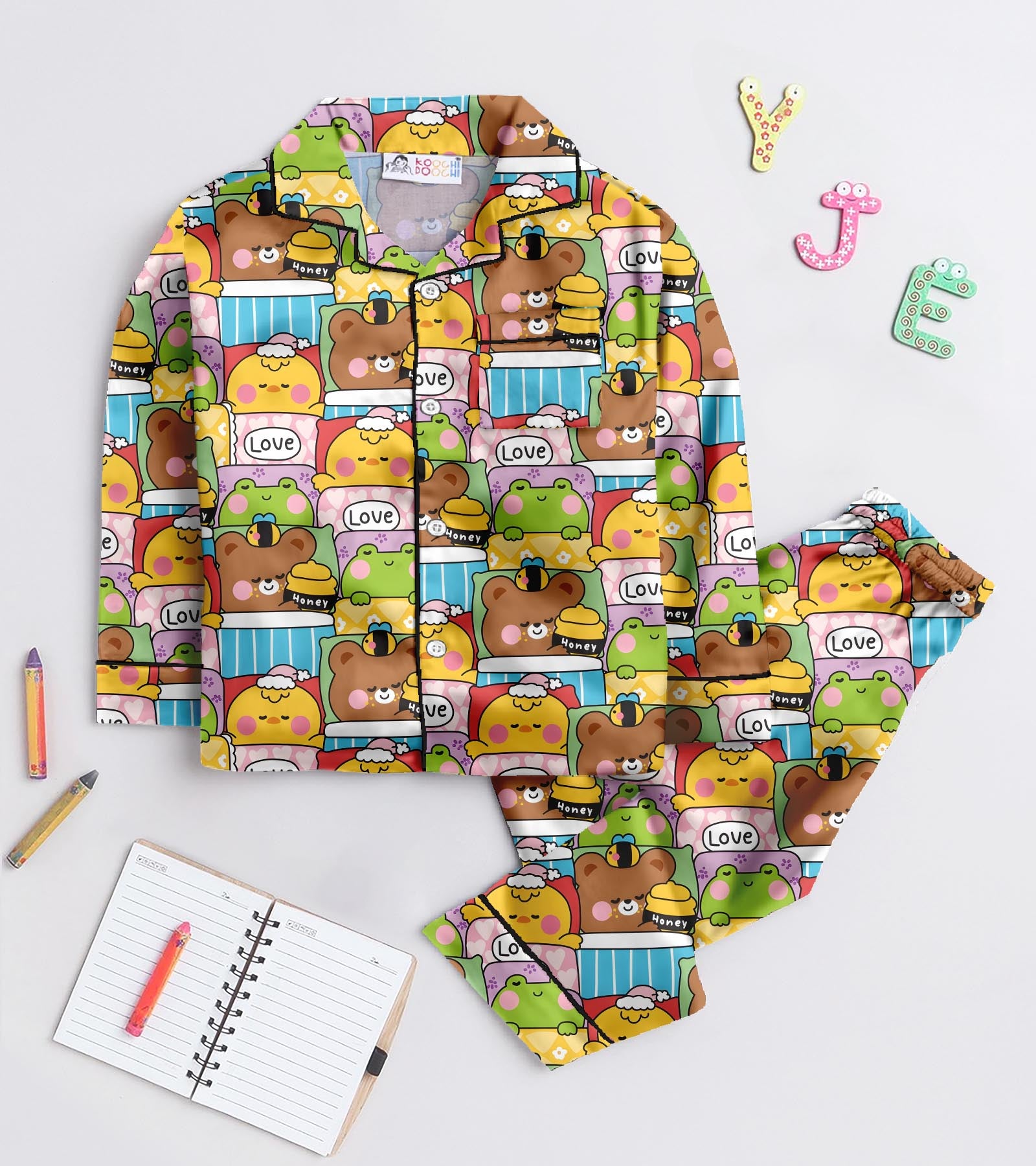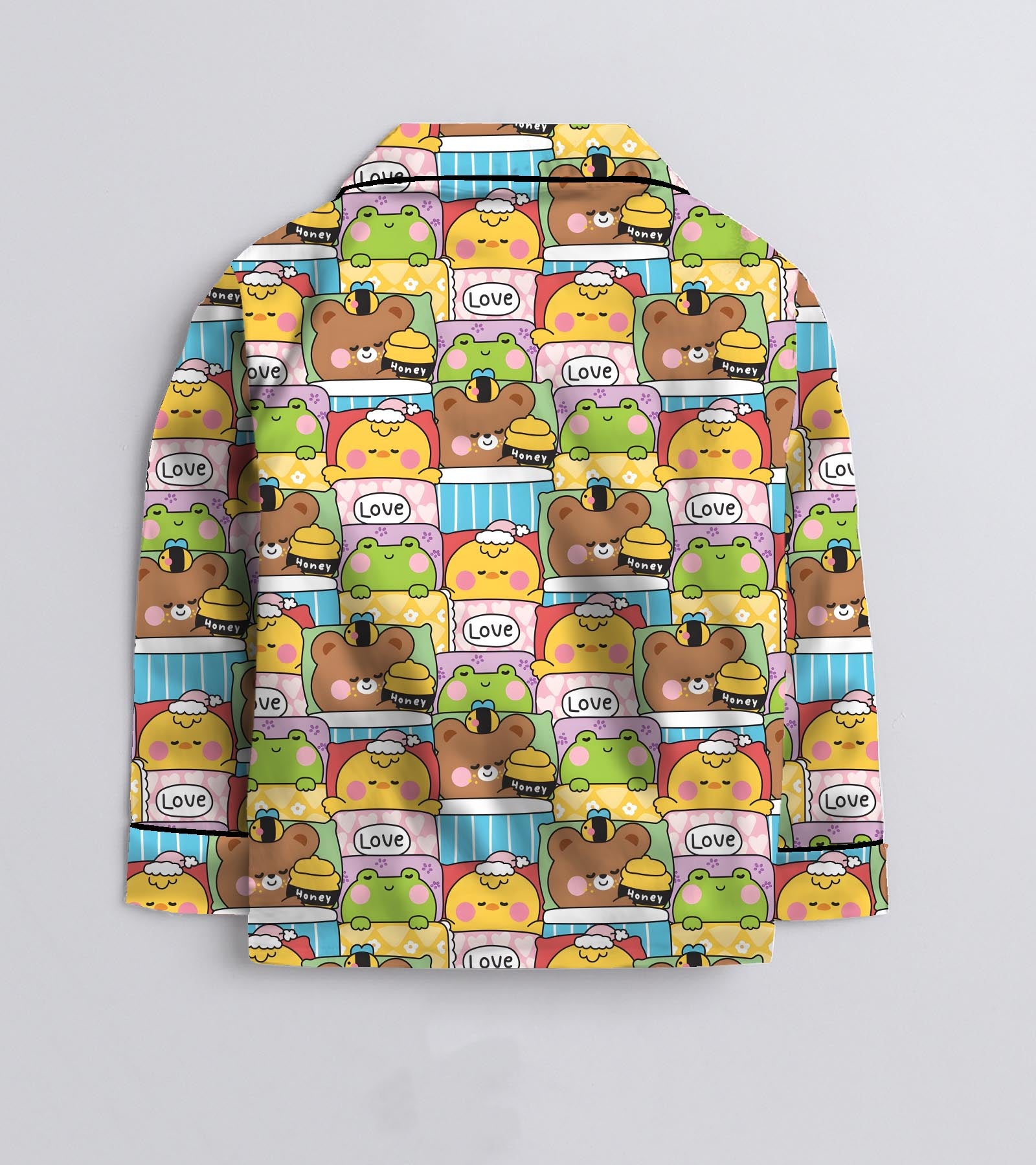 PRINT & DESIGN: This design exudes playful charm. The full sleeve shirt and full-length printed Pyjama ensure ultimate comfort, while the button-up front and soft elastic bottom with contrast cording add a touch of elegance. Perfect for cozy nights and sweet dreams!