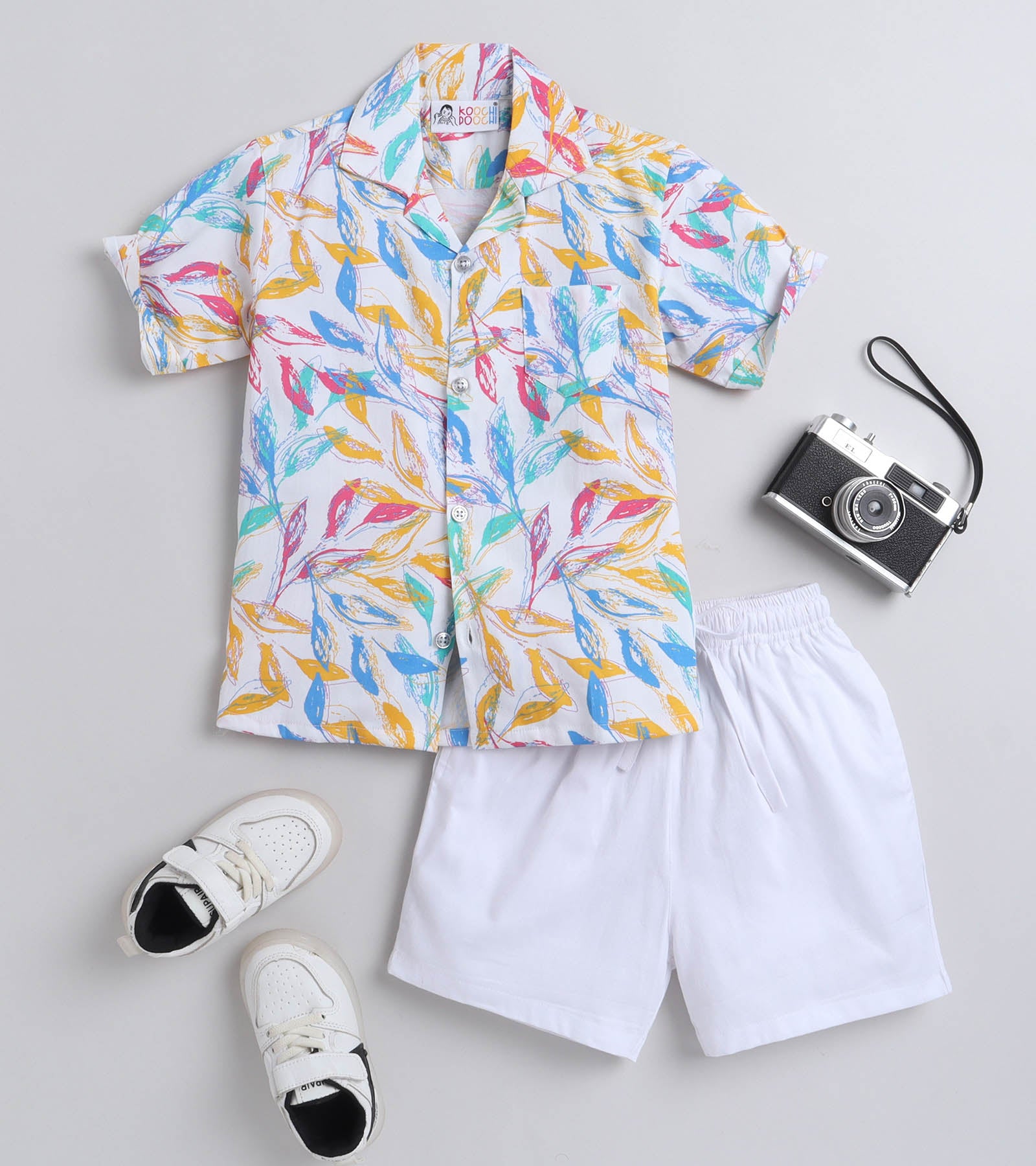 Leaf Shadow Digital printed Shirt with White solid Shorts