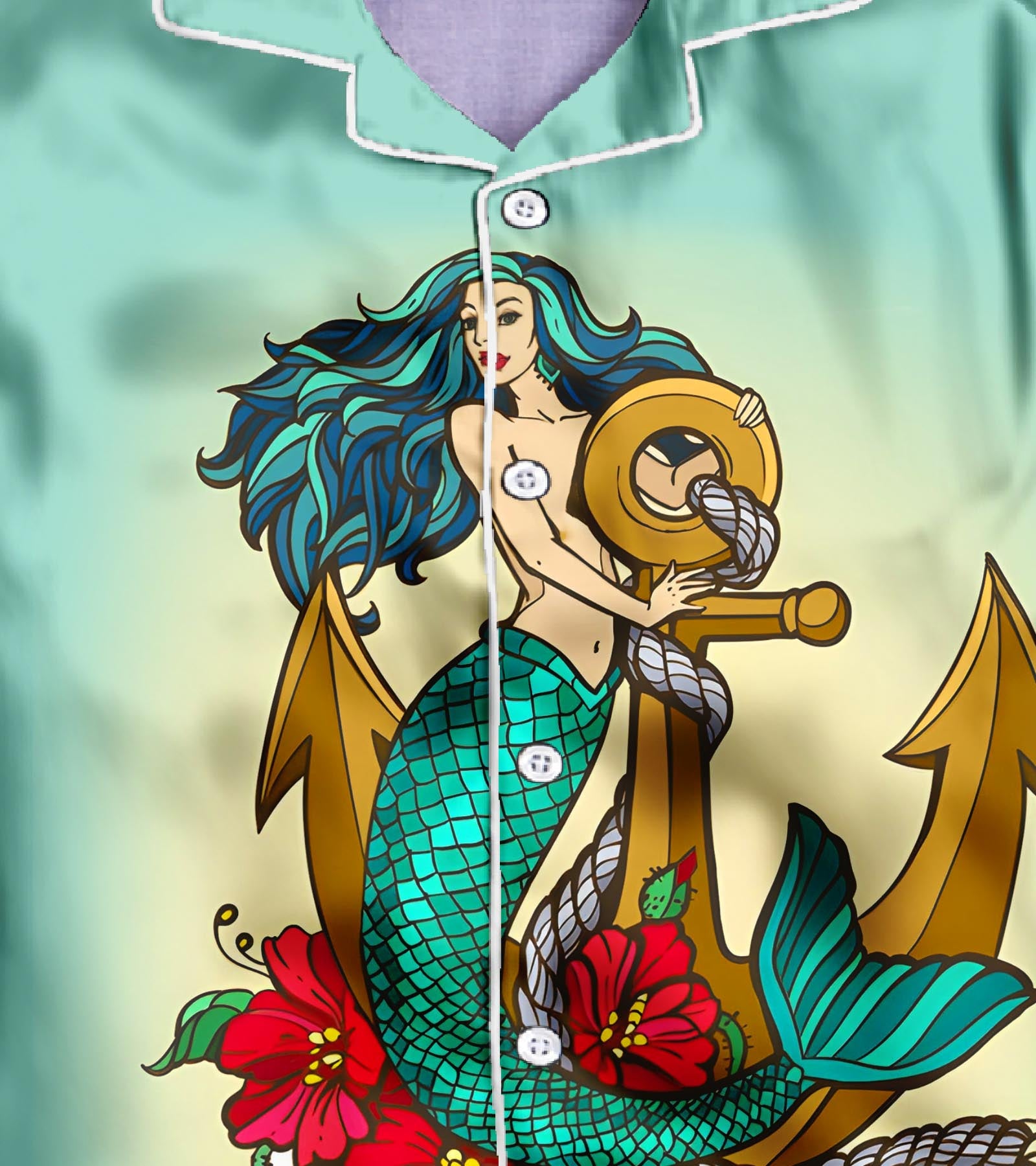 Mermaid with Anchor Printed Girls Pure Cotton Nightsuit Set